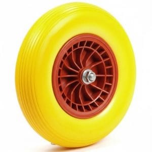 Wheelbarrow wheel 4.00-8 pu plastic yellow, roller bearing, axle hole 20 mm, hub length 130 mm